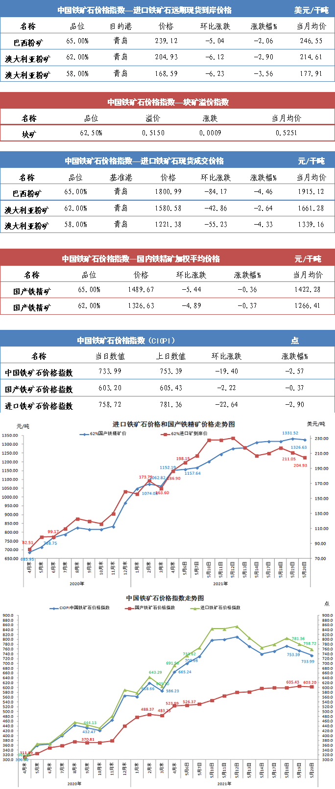 【行業指數】5月20日中國鐵礦石價格指數