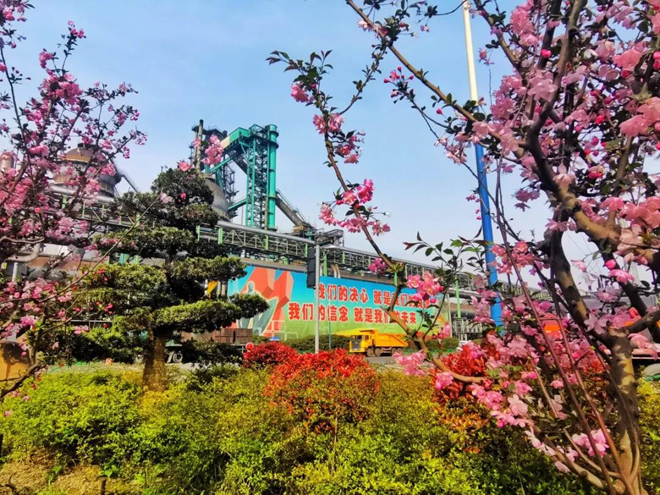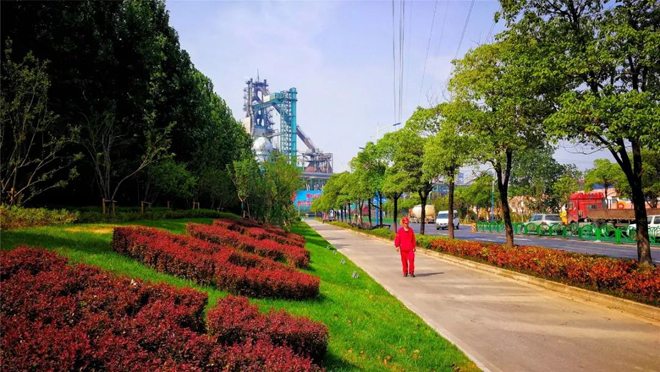 植綠護綠,刷新顏值。沙鋼立足8公裏長江綠廊風景線輻射全域打造 花園式工廠,高水平設計、多樹種搭配開展綠化美化,打造出“春有花、夏有蔭、秋有果、冬有綠” 的優美廠區環境。