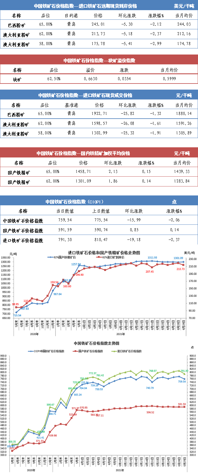 【行業指數】6月29日中國鐵礦石價格指數