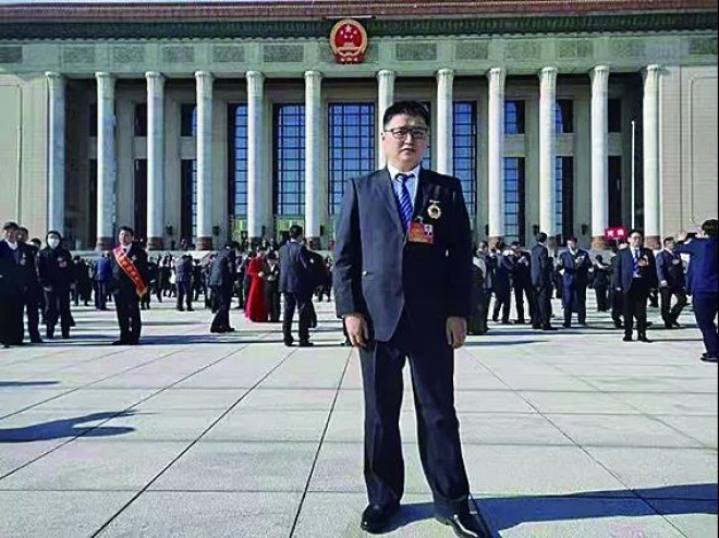 圖為2020年李永生在人民大會堂領獎。(朱爽 攝)