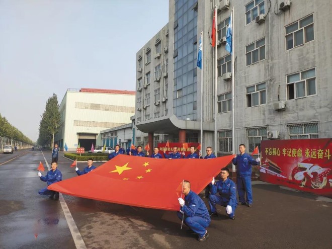 圖為河鋼宣鋼二鋼軋廠黨委開展向國旗獻禮活動。(河鋼宣鋼供圖)