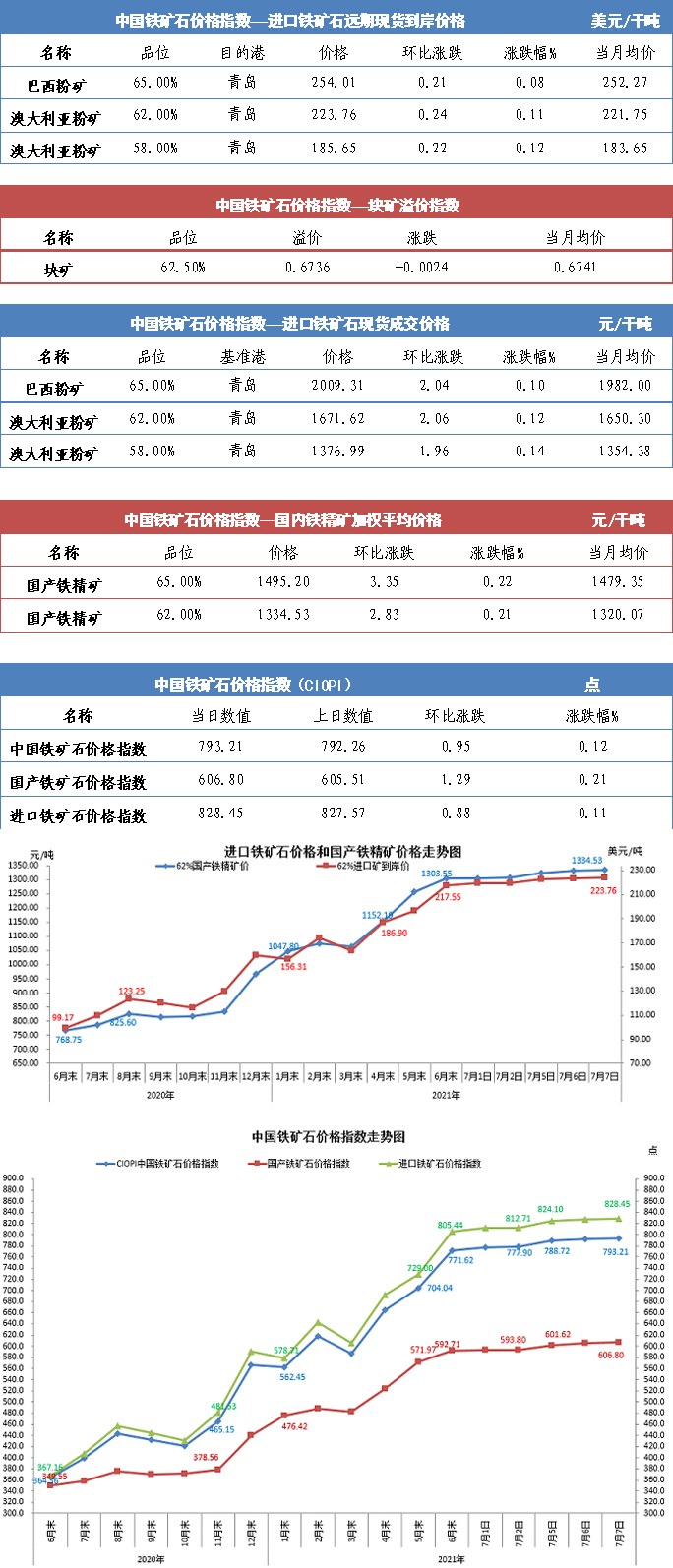 【行業指數】7月7日中國鐵礦石價格指數