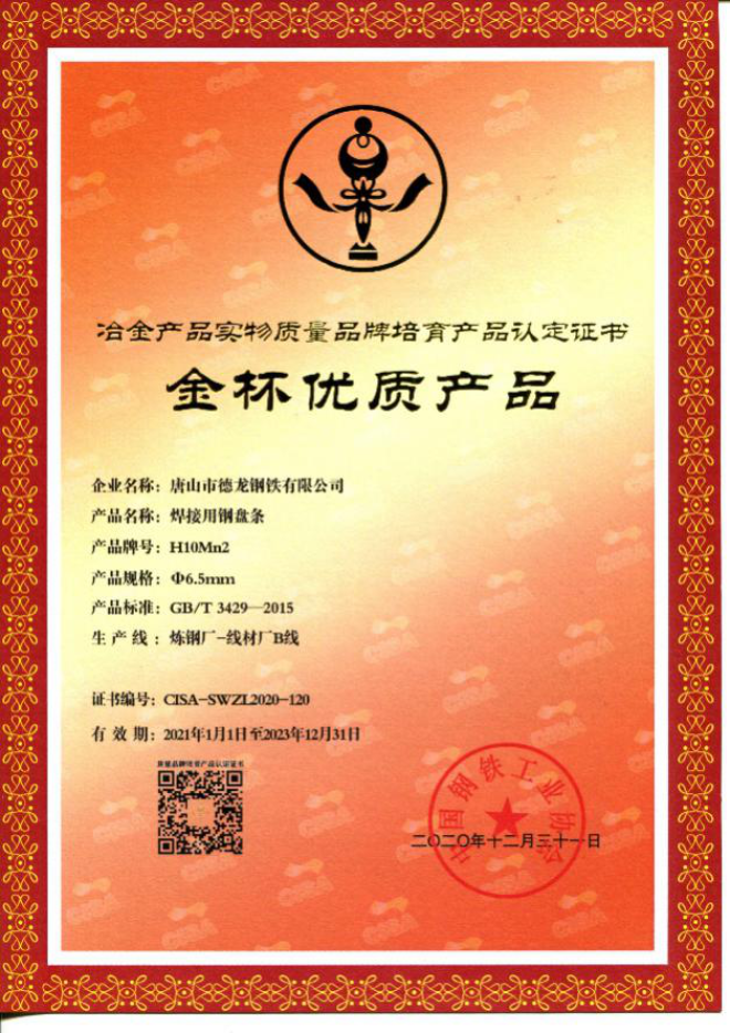 此ci外wai,為wei滿man足zu用yong戶hu的de不bu同tong質zhi量liang需xu求qiu,唐tang山shan德de龍long在zai開kai發fa了le低di飛fei濺jian率lv氣qi保bao焊han絲si熱re軋zha盤pan條tiao和he高gao效xiao拉la拔ba氣qi保bao焊han絲si焊han接jie用yong鋼gang熱re軋zha盤pan條tiao之zhi後hou,又you連lian續xu開kai發fa了le壓ya力li容rong器qi用yong埋mai弧hu焊han絲si熱re軋zha盤pan條tiao、低厚度氧化鐵皮焊條鋼等多個定製化鋼種,深受用戶好評。