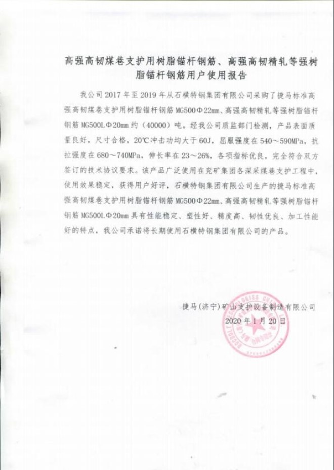 這些僅僅是中國500強企業——石橫特鋼生產的“石特牌”錨杆鋼所創造的驕人業績的幾個縮影。