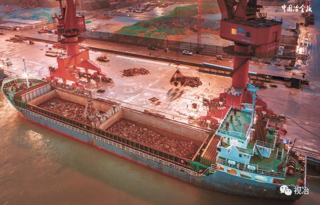 2021年1月23日,一條載有3002噸日本產再生鋼鐵原料的貨船抵達上海港龍吳碼頭,並於1月29日順利通過海關驗收。這是我國再生鋼鐵原料放開進口限製後,中國寶武旗下歐冶鏈金率先完成的國內首單進口業務。(特約通訊員 張明偉 攝)