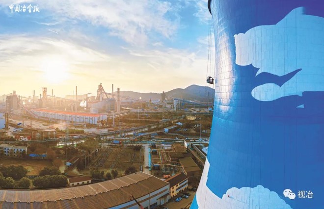 2021年1月14日,工人們正在對馬鋼CCPP(燃氣蒸汽聯合循環發電機組)工程項目冷卻塔進行美化塗裝(如圖)。中國寶武目前正帶頭落實碳達峰、碳中和要求,努力實現減汙降碳協同效應。旗下馬鋼正在建設的CCPP綜合利用發電工程,不僅可緩解生產與用電供需矛盾,每年還可節省標煤13.82萬噸。該工程投運後,馬鋼將全麵實現煤氣零放散。(張明偉 攝 錢廣發 文)