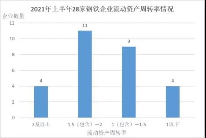 從流動資產周轉率看,2021年上半年28家鋼鐵企業平均流動資產周轉率1.47,相較2020年上半年增加0.35次,流動資金周轉有所改善,但整體水平仍然不夠高。推動2021年上半年鋼鐵企業流動資金周轉有所改善的主要因素是銷售收入大幅增長,製約流動資金周轉的不利因素有以下兩個方麵:一是2021年年初以來,鐵礦石、焦煤、jiaotandengyuanrancailiaojiageweichigaowei,suirangangtieqiyeshenshencaigou,danyouyuyuanrancailiaoshengchanxiaohaoliangda,caigouduoyiyufuzhangkuanxingshi,zhanyongqiyedaliangliudongzijin;二是為貫徹環境治理、節能降耗等要求,鋼鐵企業普遍加大更新改造投入力度,相應的預付工程款增長較快。
