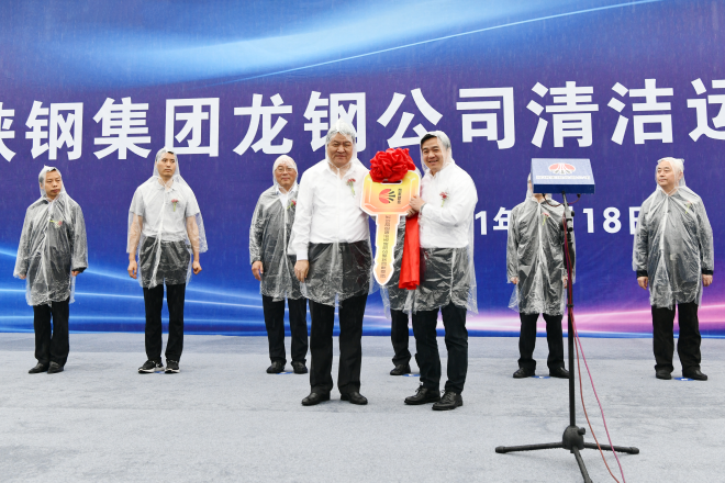 韓城市人民政府副市長郭繼鋒,國家電投集團綠電交通產業創新中心主任、上海啟源芯動力科技公司總經理郭鵬,中國兵器工業集團北奔重型汽車集團總經理、黨委副書記郭平曉,陝西汽車控股集團有限公司副總經理楊誌剛,龍鋼公司黨委書記、董事長陳驍分別致辭,龍鋼公司總經理劉安民主持儀式。