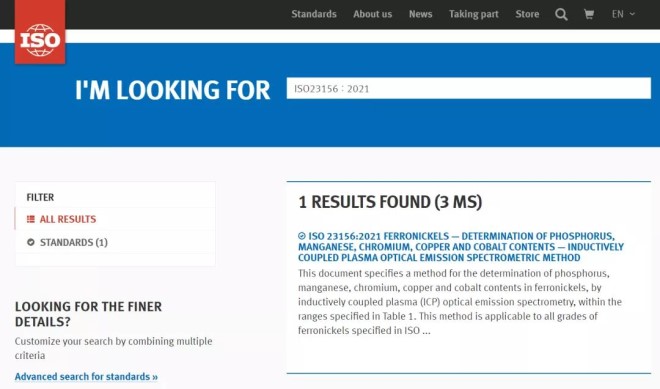 3月26日,由酒鋼主持製定的鎳鐵檢測國際標準(ISO23156∶2021)在國際標準化組織(ISO)官網正式發布實施。該標準是在酒鋼主持起草的中國國家標準的基礎上製定的,對推進鎳鐵世界貿易過程中品質仲裁檢測的綠色、環保、智能和高效將發揮重要作用。