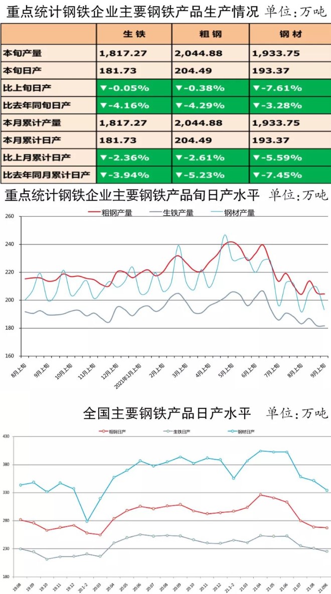 粗鋼、生鐵、鋼材日產量均下降——9月上旬重點統計鋼鐵企業生產、庫存情況
