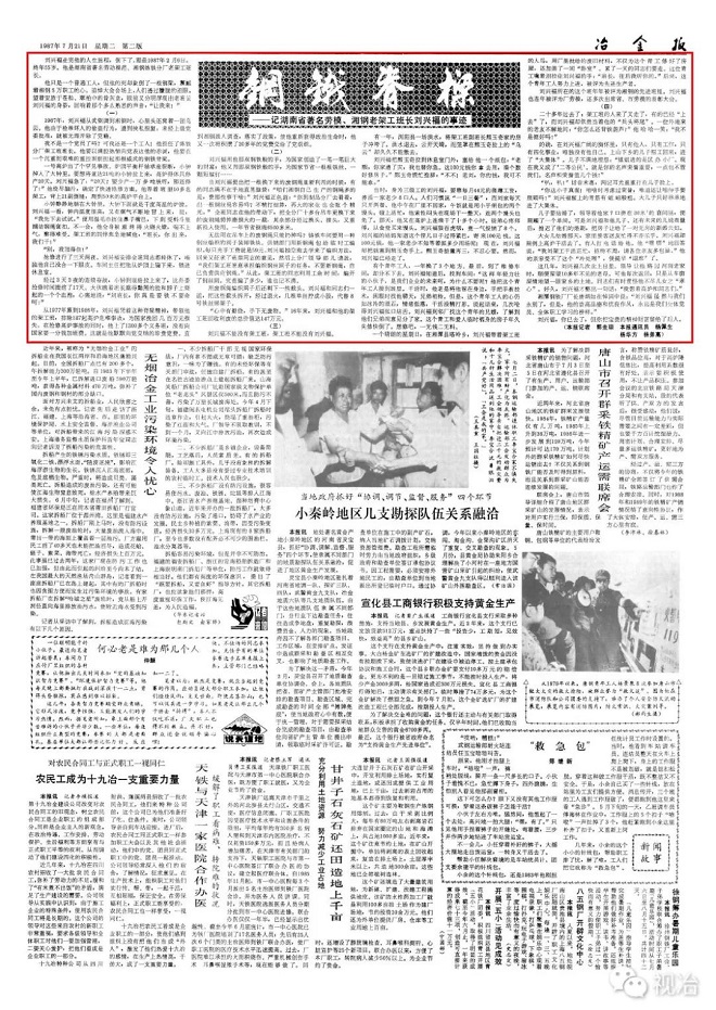 ▲1987年7月21日《冶金報》刊發的《鋼鐵脊梁——記湖南省著名勞模、湘鋼老架工班長劉興福的事跡》的報道