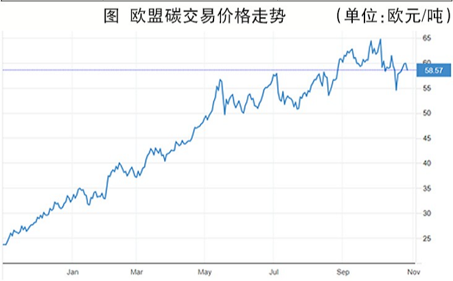 CBAM提(ti)出(chu),如(ru)果(guo)外(wai)國(guo)生(sheng)產(chan)商(shang)已(yi)經(jing)就(jiu)生(sheng)產(chan)過(guo)程(cheng)中(zhong)的(de)碳(tan)排(pai)放(fang),從(cong)相(xiang)關(guan)碳(tan)排(pai)放(fang)市(shi)場(chang)購(gou)買(mai)過(guo)排(pai)放(fang)額(e)度(du)或(huo)繳(jiao)納(na)過(guo)碳(tan)稅(shui),則(ze)進(jin)口(kou)商(shang)可(ke)以(yi)相(xiang)應(ying)抵(di)扣(kou)其(qi)應(ying)購(gou)買(mai)的(de)歐(ou)盟(meng)碳(tan)進(jin)口(kou)許(xu)可(ke)。目(mu)前(qian)CBAM對於定價機製仍不明確,如果僅考慮從碳市場體現的“顯性碳價”,那麼鋼鐵企業節能降碳技術改造、工藝創新、研發攻關等無法通過碳市場體現的投入,即“隱性碳價”則難以被量化。企業在直接出口時,有可能仍需支付國內碳價與歐盟碳價之間的差額。從目前的情況看,截止到12月15日,中國碳市場共運行102個交易日,累計成交1.07億噸,成交額達44.26億元,均價僅為41.4元/噸;但歐盟的碳價在全球能源緊張的背景下從年初的25歐元/噸一路攀升至12月8日的89.37歐元/噸的曆史最高值,約為我國目前碳交易價格的15倍(如圖)。