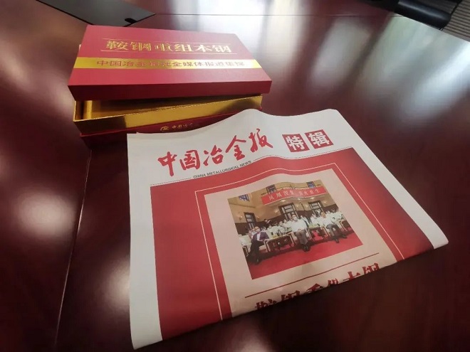 報紙是珍貴的曆史見證,保存報紙就是保存曆史。為銘記曆史、珍藏曆史,中國冶金報社特將刊有鞍鋼重組本鋼重磅係列報道的6期報紙收集整理,放入精美禮盒,送交鞍鋼黨委宣傳部。