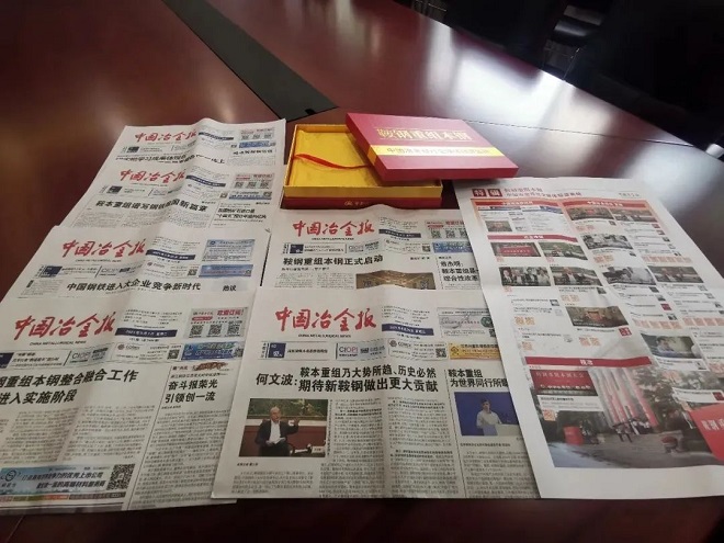 中zhong國guo冶ye金jin報bao社she按an照zhao何he文wen波bo書shu記ji的de要yao求qiu,由you社she長chang帶dai隊dui,集ji中zhong報bao社she骨gu幹gan力li量liang,全quan力li以yi赴fu,完wan成cheng了le鞍an鋼gang重zhong組zu本ben鋼gang大da會hui的de係xi列lie全quan媒mei體ti報bao道dao,見jian證zheng並bing記ji錄lu了le這zhe一yi重zhong要yao的de曆li史shi時shi刻ke。《中國冶金報》利用6期頭版頭條予以報道,先後刊發鋼協會長副會長單位領導、下遊主要用戶領導的賀詞賀信等報道25篇,後續報道6篇;中國冶金報社官微持續跟蹤報道相關新聞,共發布報道42篇,反響熱烈,網友紛紛留言討論鞍鋼重組本鋼的重大意義。