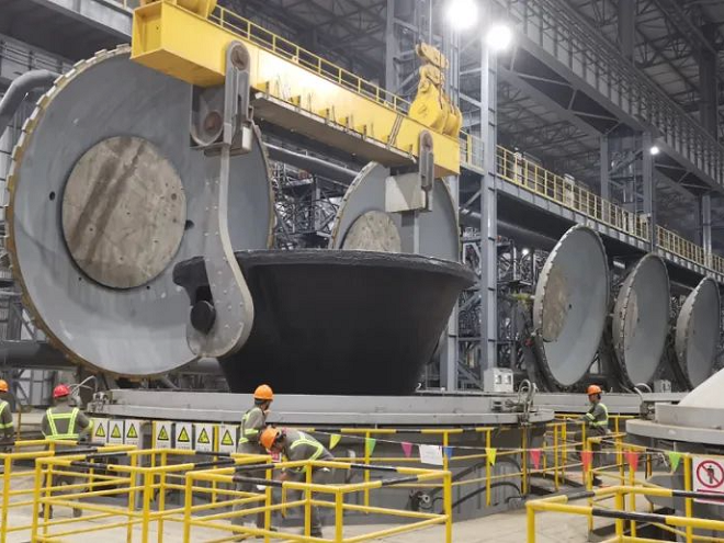 第一代400攝氏度熱燜裝置內壁采用鋼板焊製,高溫下鋼板易變形、壽命短;第二代800攝氏度熱燜裝置內壁采用鑄鐵板,用軌道鋼固定,高溫時軌道鋼變形,內壁脫落,挖取渣時鑄鐵板易撞碎;第三代1650攝氏度熔融鋼渣池式熱燜裝置耐高溫,急冷急熱不變形;第四代世界最大直徑全自動快開熔融鋼渣高效罐式有壓熱燜裝置單體處理效率提升70%……中冶環保人以工匠精神破解技術“密碼”,也再次驗證了中國鋼渣資源化處理與利用係統及裝備達到世界領先水平。