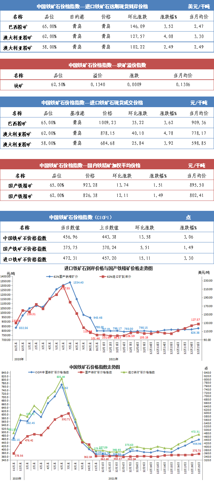 【行業指數】12月21日中國鐵礦石價格指數
