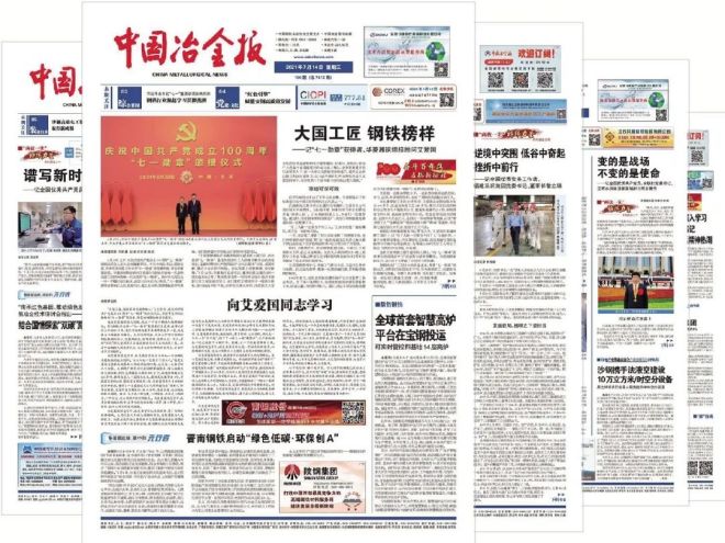今年7月1日當天,《中國冶金報》隆重推出60塊版內容豐富、精彩紛呈的建黨百年特刊——《百煉成鋼》。該特刊一經推出,立即在行業內外引起強烈反響,並獲得中國記協點讚。中國記協網發文稱,《百煉成鋼》特刊將報道視角放眼全國,突出鋼鐵特色,聚焦紅色元素、鋼鐵故事、鋼鐵亮點,在注重曆史厚度、空間廣度的同時突出時代高度,為推動鋼鐵行業高質量發展彙聚了強大的正能量。