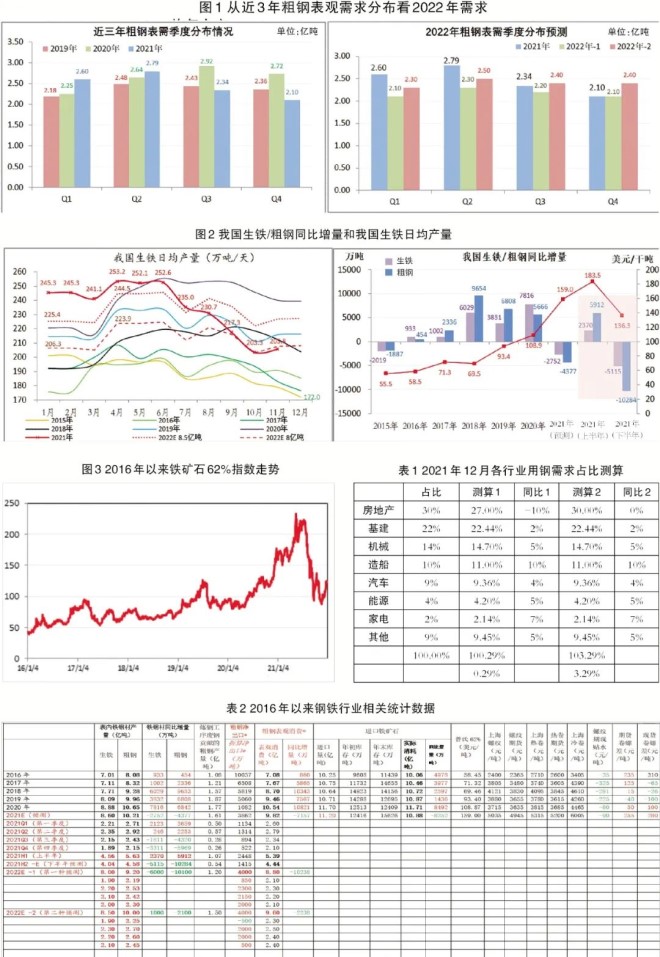 目前市場對於2022年行業運行發展的主要關注點在於:一是2021年下半年減產成效顯著,2022年nian是shi否fou能neng鞏gong固gu這zhe一yi成cheng果guo?二er是shi鋼gang鐵tie行xing業ye能neng否fou精jing準zhun把ba握wo商shang品pin供gong需xu基ji本ben麵mian及ji行xing業ye發fa展zhan規gui律lv,抓zhua住zhu市shi場chang機ji遇yu提ti質zhi增zeng效xiao,提ti升sheng行xing業ye在zai產chan業ye價jia值zhi鏈lian上shang的de地di位wei?三san是shi後hou疫yi情qing時shi代dai耐nai用yong品pin消xiao費fei終zhong將jiang退tui潮chao,2022年我國將在房地產、基建等傳統鋼鐵消費領域釋放多大的穩增長力度?