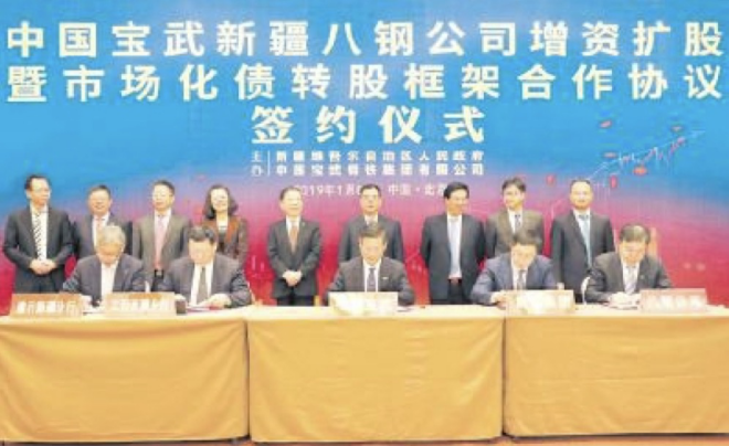 八鋼增資擴股暨市場化債轉股框架合作協議簽署儀式現場。(包悟軒 攝)