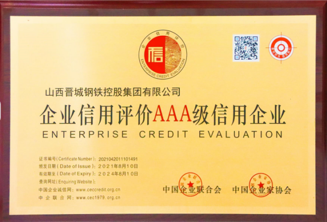 圖為晉鋼獲得“2021中國優秀鋼鐵企業品牌”。