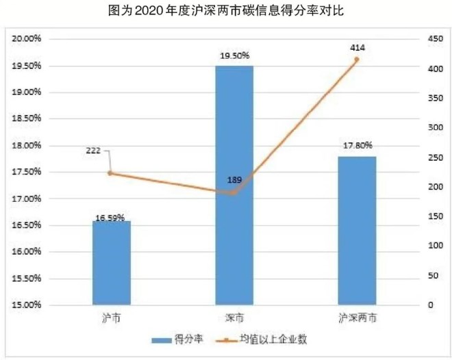 滬深兩市企業碳信息披露得分接近。《報告》顯示,在開展碳信息披露工作的企業中,滬市碳信息披露得分率為16.59%;深市碳信息披露得分率為19.50%,深市企業碳信息披露得分率略高於兩市總體平均得分率。