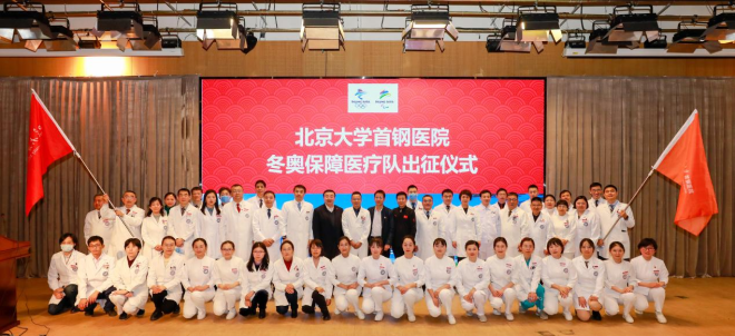 1月5日,北大首鋼醫院冬奧保障醫療隊出征儀式在首鋼醫院舉行。繼2008年奧運會之後,首鋼醫院再次成為奧運場館醫療保障牽頭醫院之一,負責首鋼滑雪大跳台、北京冬奧總部及簽約酒店的醫療保障工作。
