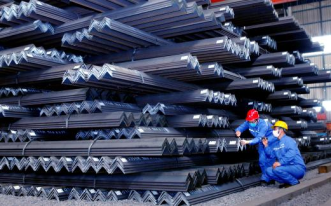 圖為河鋼技術人員正在檢查角鋼質量。(記者 李巍/攝)