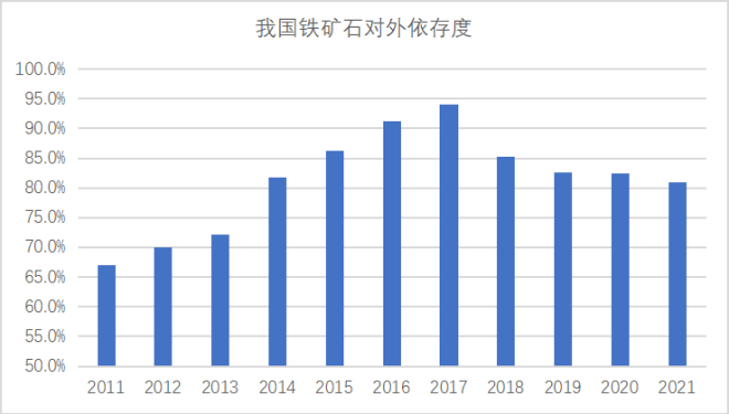 盡管2021年我國鋼鐵行業實施的產能產量“雙控”政zheng策ce,使shi得de我wo國guo鐵tie礦kuang石shi進jin口kou量liang一yi改gai連lian續xu上shang漲zhang之zhi勢shi,但dan居ju高gao不bu下xia的de進jin口kou礦kuang價jia還hai是shi大da幅fu蠶can食shi了le鋼gang鐵tie行xing業ye的de合he理li利li潤run。業ye內nei人ren士shi指zhi出chu,當dang務wu之zhi急ji,加jia快kuai對dui進jin口kou鐵tie礦kuang石shi的de替ti代dai,進jin一yi步bu提ti高gao國guo產chan礦kuang和he海hai外wai權quan益yi礦kuang開kai發fa利li用yong是shi最zui有you效xiao的de辦ban法fa。當dang前qian而er言yan,鐵tie礦kuang石shi集ji中zhong壟long斷duan的de格ge局ju並bing沒mei有you改gai變bian,定ding價jia機ji製zhi也ye沒mei有you變bian。鐵tie礦kuang石shi資zi源yuan保bao障zhang能neng力li不bu足zu,仍reng然ran是shi較jiao長chang時shi間jian內nei影ying響xiang產chan業ye穩wen定ding運yun行xing和he發fa展zhan的de問wen題ti。