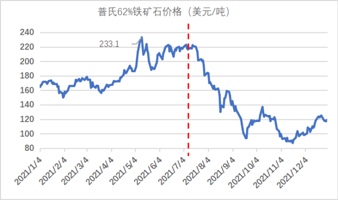 2021年(nian)上(shang)半(ban)年(nian),在(zai)沒(mei)有(you)明(ming)確(que)的(de)減(jian)產(chan)政(zheng)策(ce)的(de)背(bei)景(jing)下(xia),鋼(gang)材(cai)下(xia)遊(you)需(xu)求(qiu)旺(wang)盛(sheng),鋼(gang)廠(chang)生(sheng)產(chan)積(ji)極(ji)性(xing)大(da)大(da)提(ti)高(gao),各(ge)月(yue)粗(cu)鋼(gang)產(chan)量(liang)大(da)幅(fu)增(zeng)加(jia),進(jin)口(kou)鐵(tie)礦(kuang)石(shi)價(jia)格(ge)也(ye)量(liang)價(jia)齊(qi)升(sheng)。根(gen)據(ju)普(pu)氏(shi)價(jia)格(ge)指(zhi)數(shu),62%進口鐵礦石價格屢屢突破有記錄以來的最高值。5月12日,62%普氏鐵礦石價格指數創下曆史最高值233.10美元/噸。鐵礦石價格的快速上漲也引起國家的高度重視。國務院常務會議14天內連續3次對包括鐵礦石在內的大宗商品漲價進行了關切:5月12日,國務院常務會議指出,要跟蹤分析國內外形勢和市場變化,做好市場調節,應對大宗商品價格過快上漲及其連帶影響;加強貨幣政策與其他政策配合,保持經濟平穩運行。5月19日,國務院常務會議指出,部署做好大宗商品保供穩價工作,保持經濟平穩運行。5月26日(ri),國(guo)務(wu)院(yuan)常(chang)務(wu)會(hui)議(yi)指(zhi)出(chu),用(yong)市(shi)場(chang)化(hua)辦(ban)法(fa)引(yin)導(dao)上(shang)下(xia)遊(you)穩(wen)定(ding)原(yuan)材(cai)料(liao)供(gong)應(ying)和(he)產(chan)銷(xiao)協(xie)作(zuo),做(zuo)好(hao)保(bao)供(gong)穩(wen)價(jia)。隨(sui)後(hou),鐵(tie)礦(kuang)石(shi)價(jia)格(ge)迎(ying)來(lai)了(le)短(duan)暫(zan)性(xing)的(de)下(xia)跌(die),但(dan)不(bu)久(jiu)又(you)緩(huan)慢(man)回(hui)升(sheng)至(zhi)200美元/噸以上,持續高位運行。