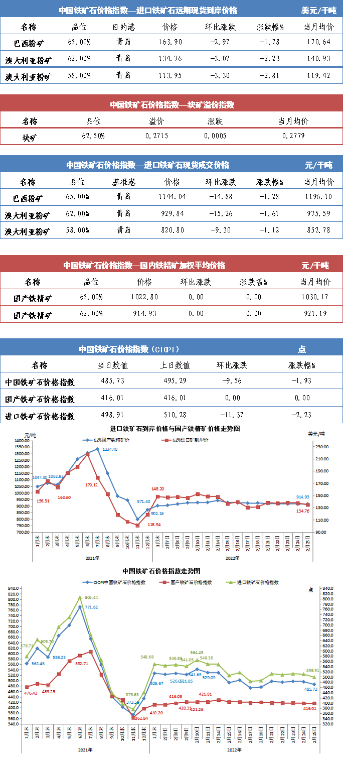 【行業指數】2月25日中國鐵礦石價格指數