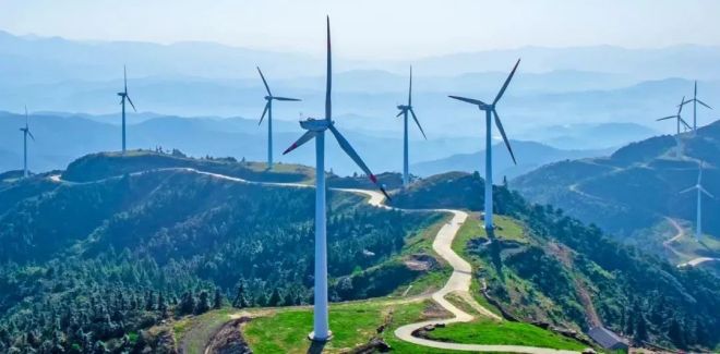 初春時節,《中國冶金報》記者在乘火車南下途中看到,在蔚藍色的天空下,一座座風力發電機組迎風而立,一片片扇葉隨風而動,構成了一幅動靜相宜、色彩絢麗的畫卷。