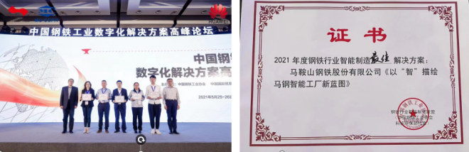 1、連獲榮譽,矢“智”不渝。馬鋼“工業大腦”、“5G+智慧料廠”2個智慧製造優秀成果案例參展第四屆“數字中國”建設峰會;《以“智”描繪馬鋼智能工廠新藍圖》在中國鋼鐵工業數字化解決方案高峰論壇發布,喜獲“鋼鐵行業最佳智能製造解決方案”殊榮;《馬鋼基於5G+MEC邊緣計算平台的智慧鋼鐵高質量工業內網建設與應用項目》榮獲第四屆“綻放杯”5G應用征集大賽-MEC邊緣計算專題賽決賽一等獎,入圍全國總決賽;基於工業互聯網平台xIn3Plat冷軋“ALLINONE”智慧工廠”被認定為2021年度安徽省智能工廠;馬鋼股份、馬鋼交材被認定為2021年度馬鞍山市智能製造標杆示範企業。冷軋總廠的“基於工業互聯網平台xIn3Plat的冷軋“ALLINONE”智控創新應用”入圍工信部2021年工業互聯網平台創新領航應用案例名單。