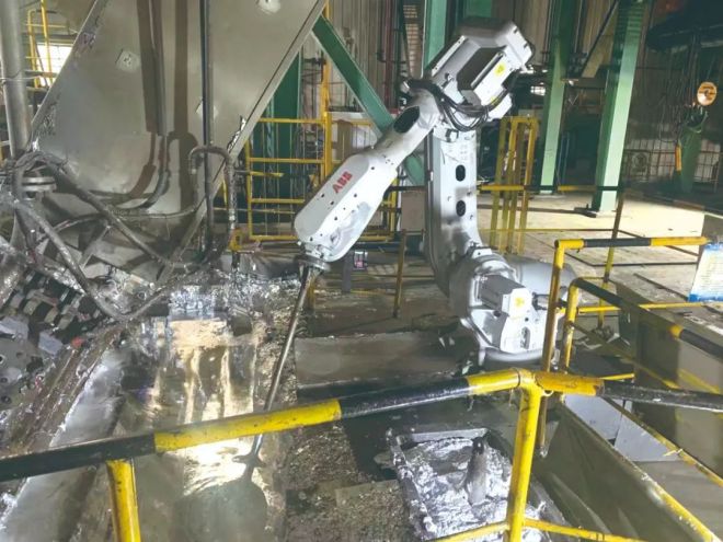 本鋼浦項撈鋅渣機器人正在進行撈鋅渣作業。攝影 趙興時