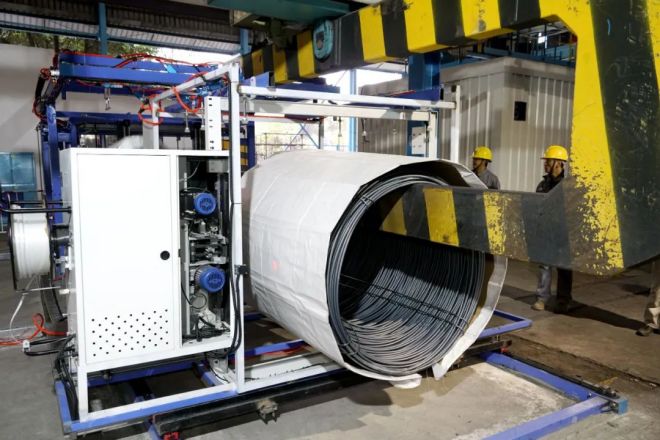 韶鋼高端工業線材套袋機,以自動化手段,推動3D(髒、累、險)崗位少人化、無人化,實現安全本質化,製造清潔化。