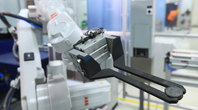 與此同步地,鄂鋼建設智慧煉鋼係統,通過對鐵水預處理、轉爐、精煉、連鑄等工序的集中監控,利用一鍵煉鋼、自動出鋼、自動測溫取樣等模型、技術工藝包、智能裝備應用,進一步完善轉爐自動化、智能化功能,提高轉爐的冶煉水平和自動化率。這不,2019年春節剛過,鄂鋼迎來一位新“員工”——第一台機器人,也就是全自動機械臂,它的工作地點在煉鋼廠快分中心。機器人開始工作後,每份樣品的物理分析速度由人工分析的5分鍾提高到130秒,效率翻番。機器人上崗,手握鋼釺的鋼鐵工人形象已成為曆史。