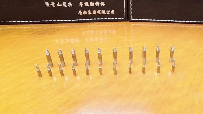 圖為用青拓集團筆尖鋼生產的筆尖樣品。(實習記者 朱亞明 攝)
