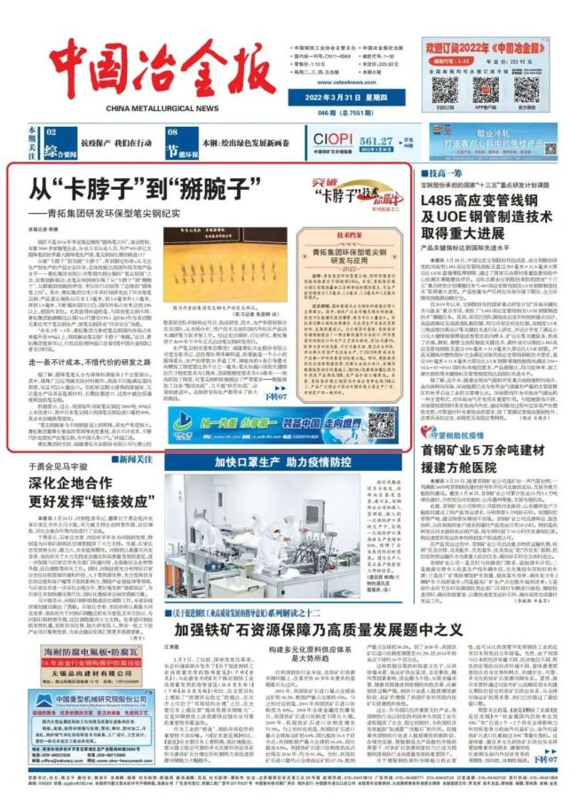 【突破“卡脖子”技術你最牛】從“卡脖子”到“掰腕子” ——青拓集團研發環保型筆尖鋼紀實