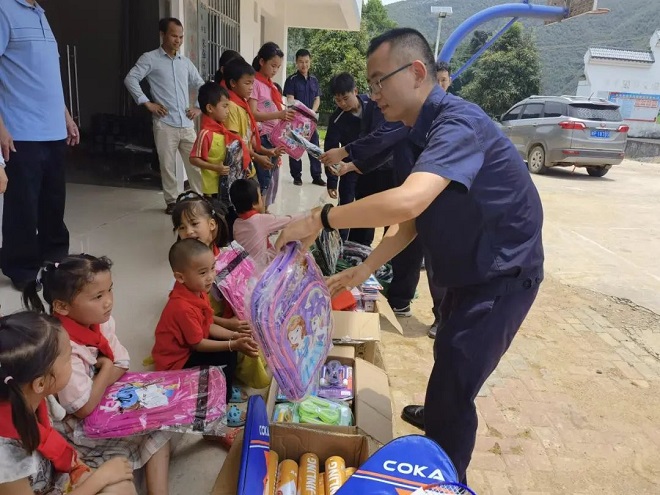 圖為徐群組織慰問鄉村小學學生,開展“六一”幫扶活動。(柳鋼 供圖)