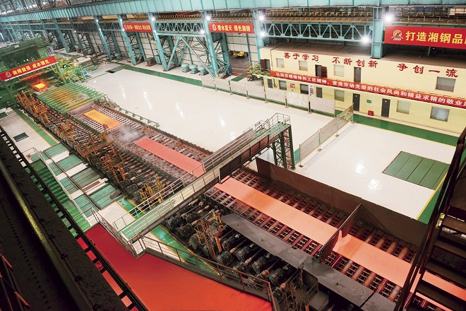 圖為湖南鋼鐵湘鋼五米板廠軋鋼生產線一角。 (湘鋼供圖)