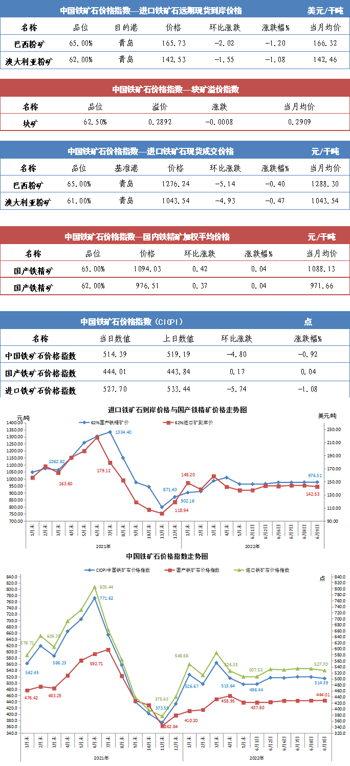 【行業指數】6月9日中國鐵礦石價格指數
