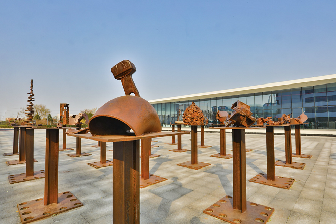 新天鋼天鐵公司鋼鐵雕塑。(新天鋼 供圖)