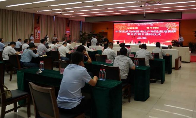 在與會領導共同見證下,馬鋼集團黨委書記、董事長,馬鋼股份黨委書記、董事長丁毅與臨汾市委常委、副市長崔元斌共同為“中國寶武馬鋼晉南生產製造基地”揭牌;任天寶與張天福分別代表馬鋼集團與晉南鋼鐵集團簽訂《H型鋼產線托管運營合作協議》;與會領導還觀看晉南鋼鐵集團三期翼城基地項目規劃彙報片。