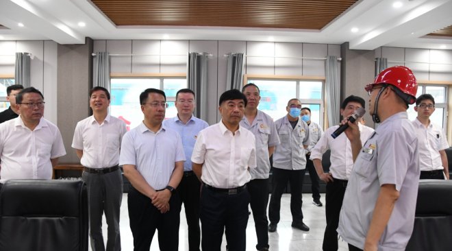 圖為丁毅一行在市、縣領導和晉南鋼鐵集團領導的陪同下參觀晉南鋼鐵