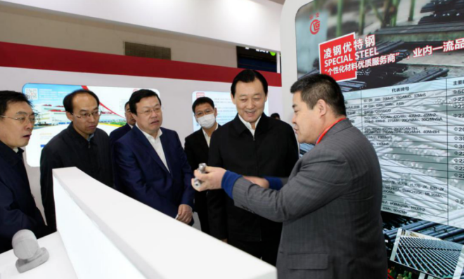圖為淩鋼集團董事長文廣推介淩鋼產品