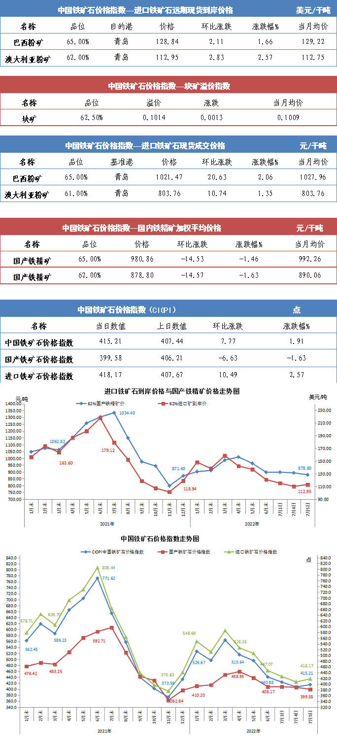 【行業指數】7月5日中國鐵礦石價格指數