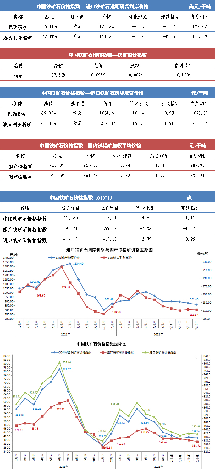 【行業指數】7月6日中國鐵礦石價格指數
