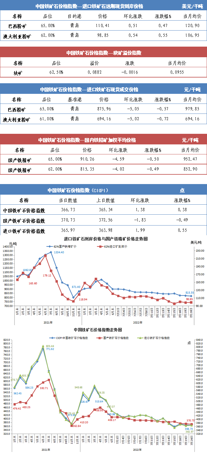 【行業指數】7月20日中國鐵礦石價格指數