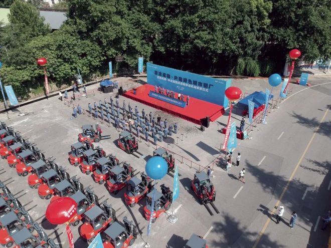 圖為中冶寶鋼聯合武鋼有限舉辦“清潔運輸,共建綠色城市鋼廠”非道路移動機械更新儀式。
