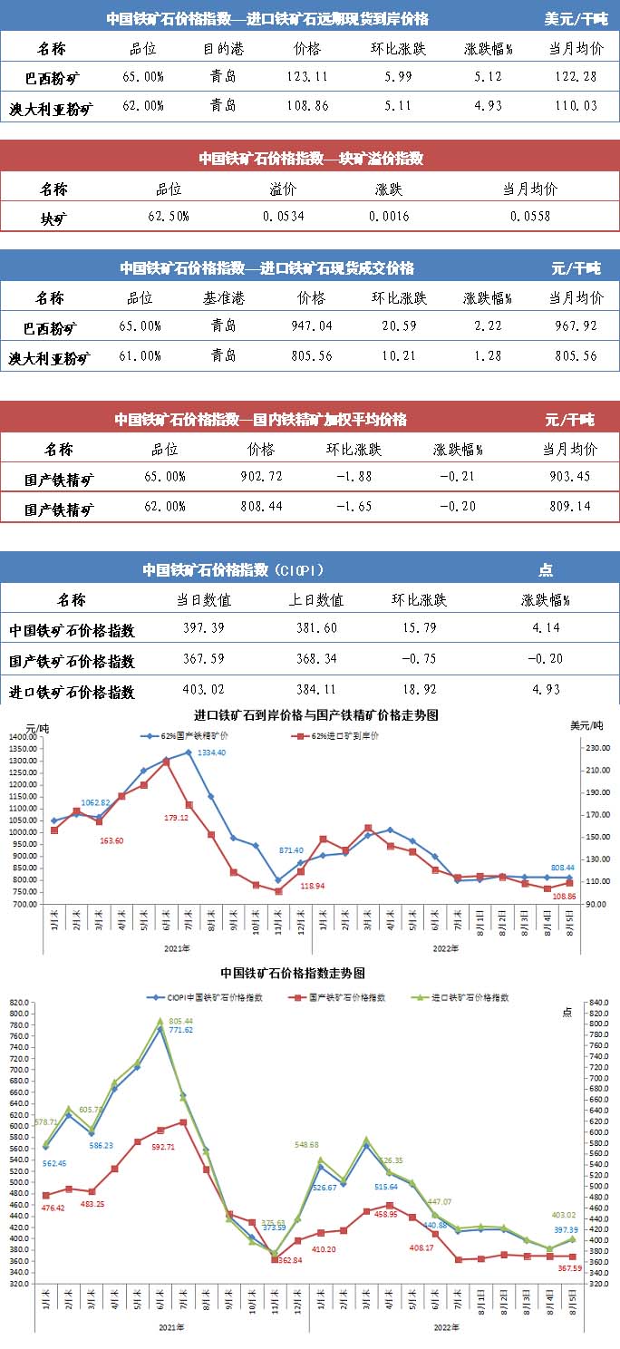 【行業指數】8月5日中國鐵礦石價格指數