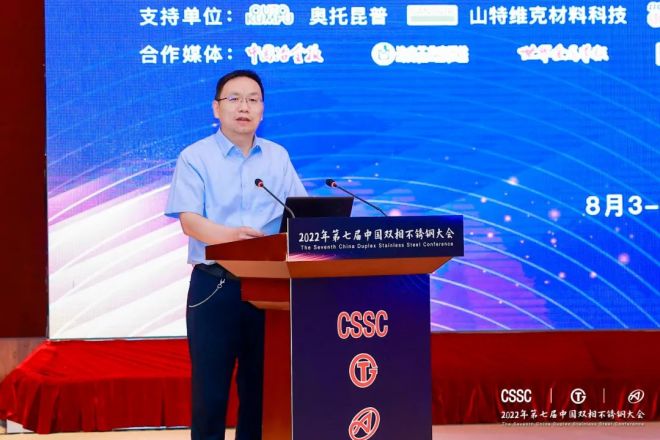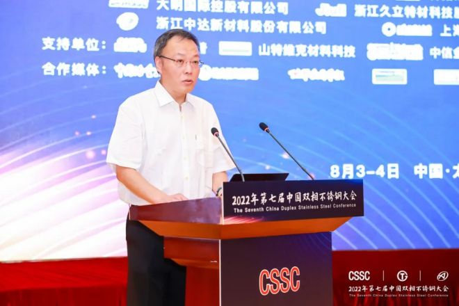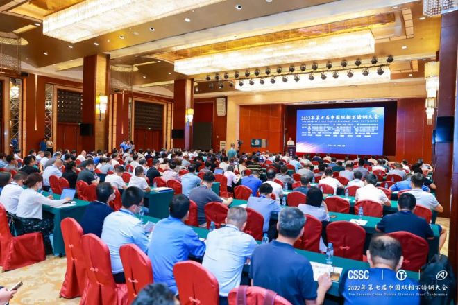 2022年8月3-4日,由中國特鋼企業協會不鏽鋼分會、太鋼集團、中國鋼研科技集團有限公司聯合主辦,酒鋼集團宏興股份公司不鏽鋼分公司、青拓集團有限公司、永興特種材料科技股份有限公司、大明國際控股有限公司、浙江久立特材科技股份有限公司、江蘇武進不鏽股份有限公司、浙江中達新材料股份有限公司、上海期貨交易所、安an徽hui富fu凱kai特te材cai有you限xian公gong司si協xie辦ban的de第di七qi屆jie中zhong國guo雙shuang相xiang不bu鏽xiu鋼gang大da會hui在zai太tai原yuan隆long重zhong召zhao開kai,來lai自zi全quan國guo各ge地di具ju有you雙shuang相xiang不bu鏽xiu鋼gang研yan發fa生sheng產chan推tui廣guang應ying用yong國guo際ji先xian進jin水shui平ping的de企qi業ye和he機ji構gou的de230餘名代表參加現場會議,線上參會人數3600餘名,來自中國寶武太鋼集團、山特維克、久立特材等企業的24位發言嘉賓通過現場發言和視頻等形式做報告。